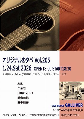 2026年1月24日(土)『オリジナルの夕べ Vol.205』