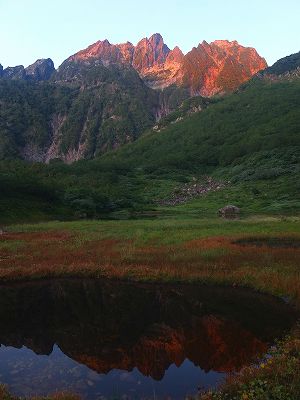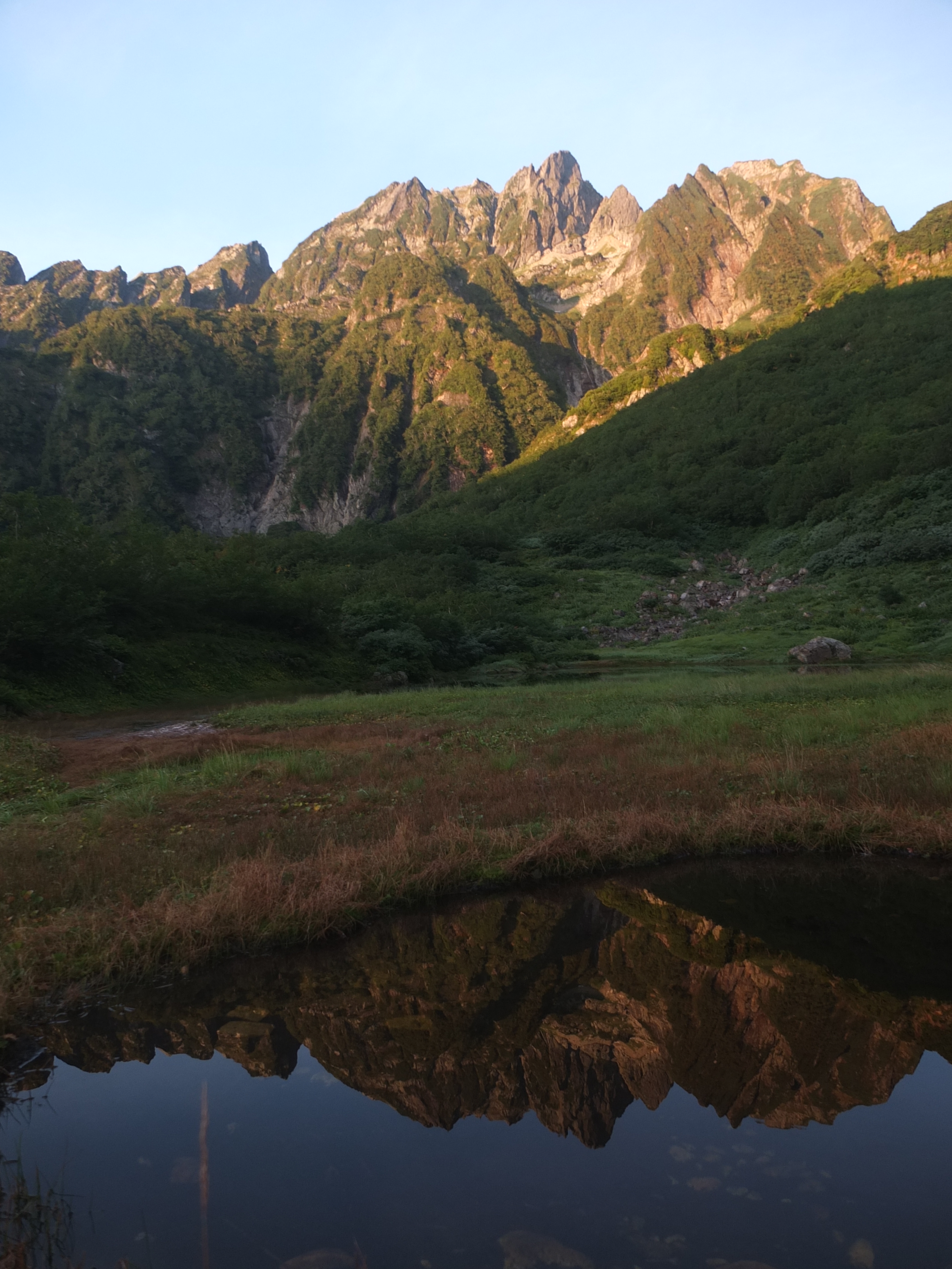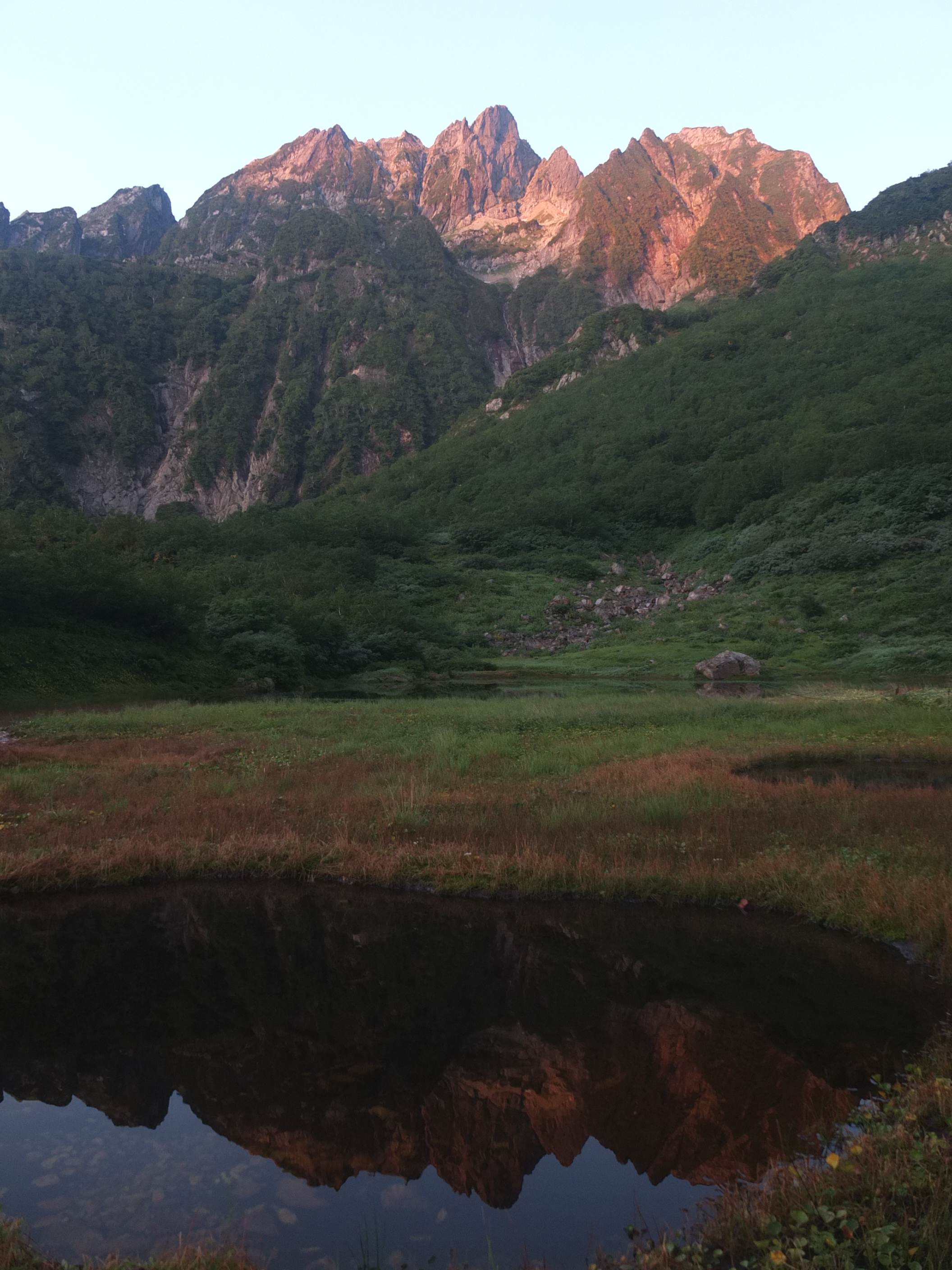 憧れの↓撮れたての『池の平』からの裏劔のモルゲンロート♪