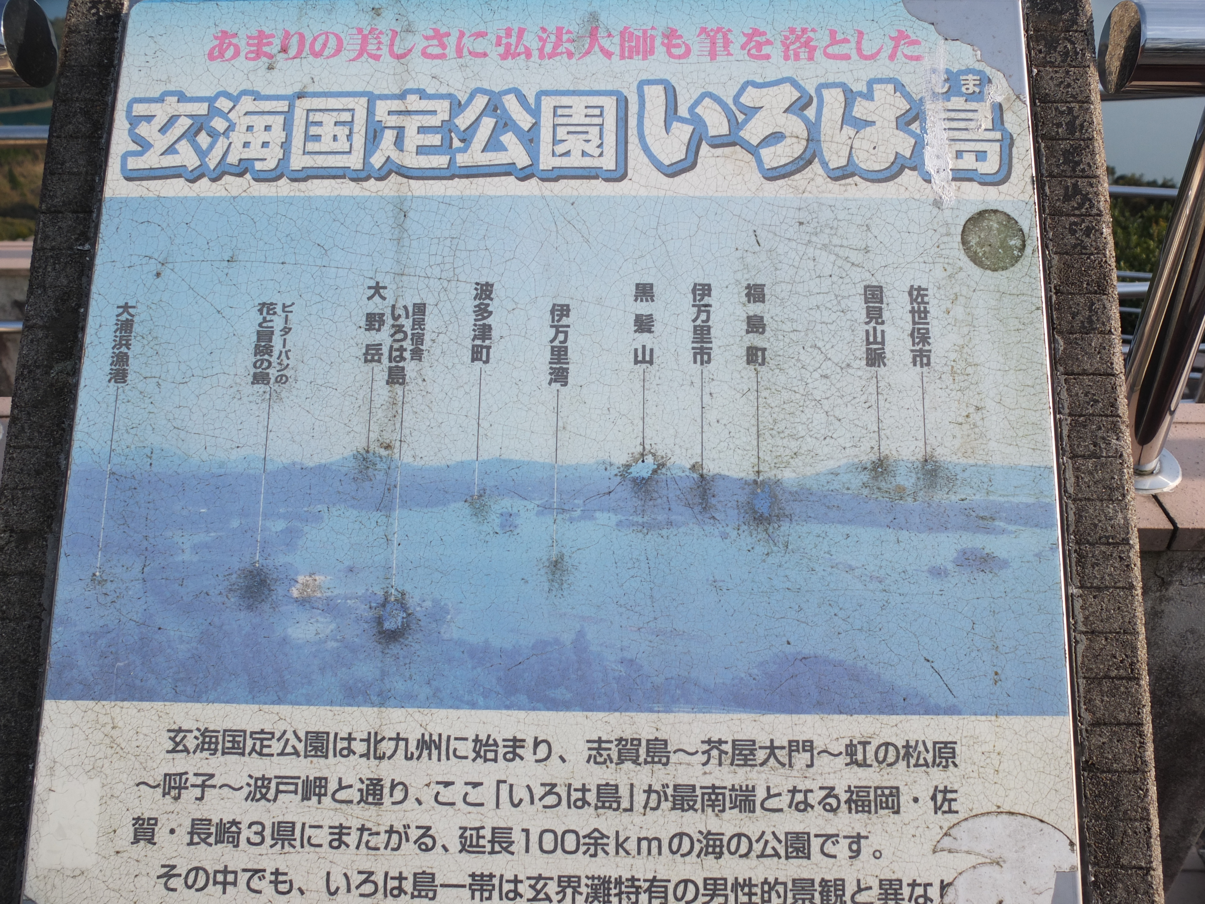 の道中『いろは島』の看板。いろは島?気になる〜けど夕陽が〜